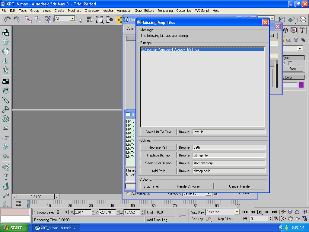 Make sure that file that's missing (a texture for the brake disc in this case) is in the location 3DS expected it to (like it says in the error window), or open up the material browser, go to the material with the disc texture and point it to the location the brake disc texture is located now.