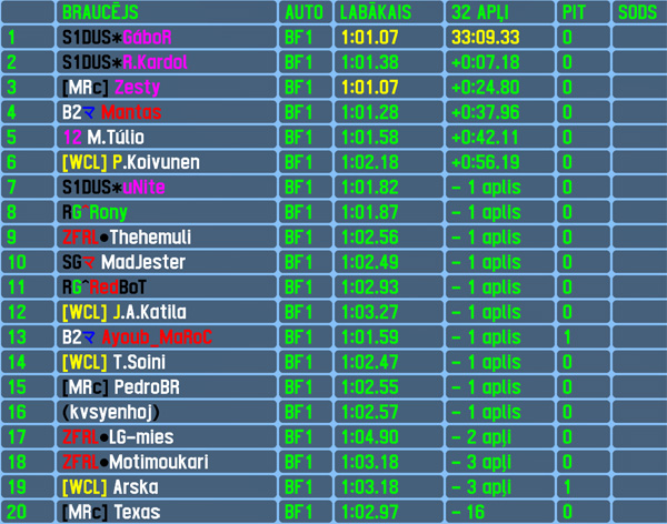 Last BF1 race won by: S1DUS*GáboR (278th RTFR - BL Historic Rev.)