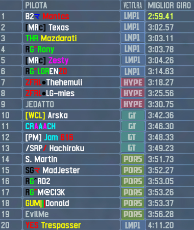 Last corner, pedal to the metal, Rony took the Chequered Flag in triumph with just 2,18 seconds over Mazdarati!