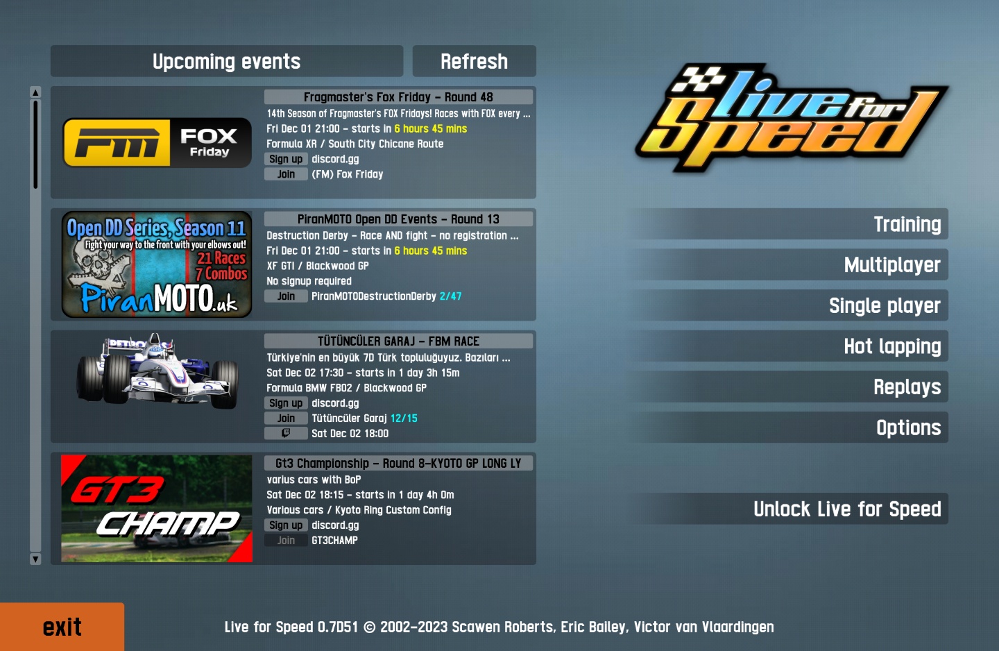 When I unlock LFS as a demo racer, it still says "Unlock Live for Speed" on the entry screen, which can be confusing for people. I think it used to say "Demo racer: xxx" before, not sure when it changed to this. Maybe it is intentional but it looks like a bug to me.