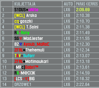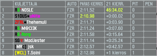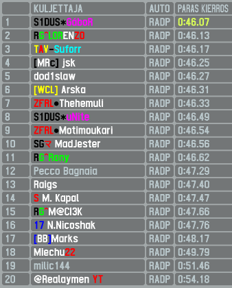 To be allowed to race, you must submit a valid laptime during the qualifying or have previously scored at least one point in our events before. This is to keep random late joiners from prolonging the race start as we have to keep our schedule because of the live broadcasts from every race. For additional protection against late joiners and server hoppers, the password is set to race after end of qualifying.