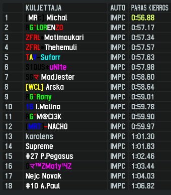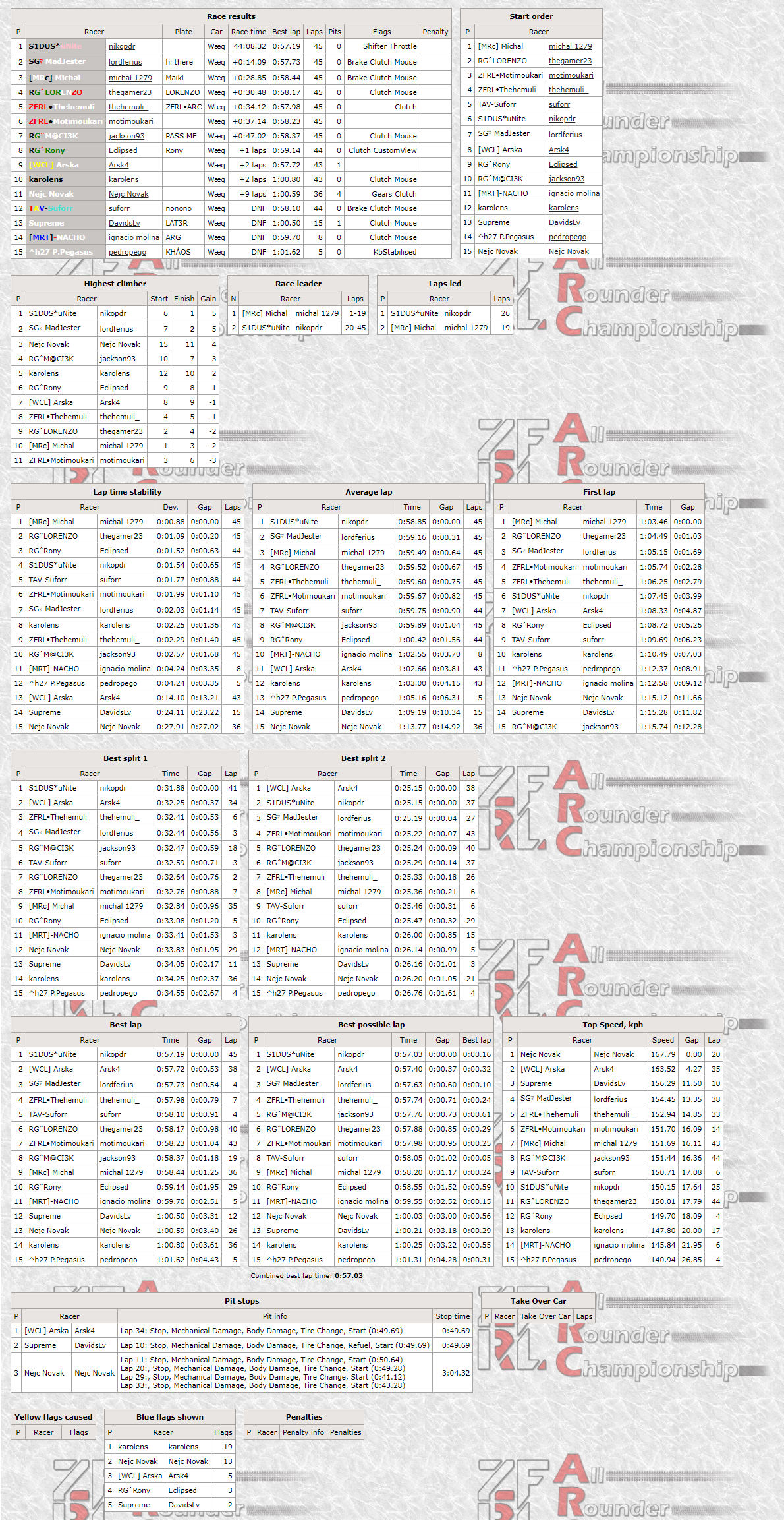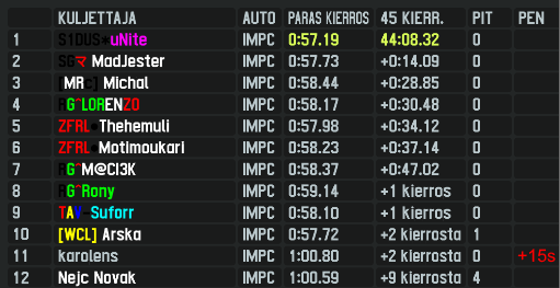 Any incident reports should be posted in this thread or in our discord server. The deadline for reports is 24 hours after the race start.