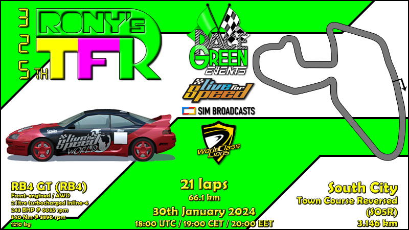 RTFR server now has been set up for laptime testing of next RTFR XL - the combo is PROTECH 92 GT3 @ Westhill International Rev. (WE2R),the race itself will take place in 3 weeks,however to find out the right distance for the race we need to find out the best possible laptime in this combo,so please join the server for some runs until sunday! On sunday the server will be turned to RandomCar duties - the 2nd season of this cars rich league will start next tuesday,make sure you don't miss out the action,info and signups in RandomCar forum section. But on coming sunday AWS will feature it's 2nd fastest round of the season,where a 250hp midengined coupe will be run in Rockingham's Oval,info and signups for this are to found in AWS forum section! In 2 weeks RTFR will return with some short track racing with one of the slick tyres wearing cars - which and were was mentioned in the broadcast of latest RTFR,full info as always in the weekend before the race.