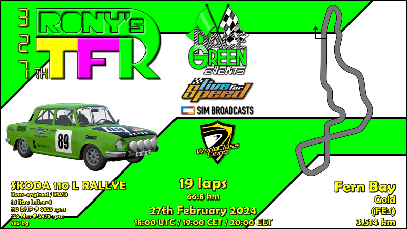 LFS has 3 real world cars in it's inventory,which have been used in RTFR plenty of times,however the difficulties to obtain licence hinders to have proper replicas of real world cars made by users. But there are few and yesterday we were racing one of those,a car from 70ies made in (back then) Czechoslovakia - Škoda 110 L. Since the original delivers rather low power,the rally version was selected as it delivers near LFS GTi class performance and is equipped with road super tyres. Still the lack of locking differentials,the engine placement at the rear and lack of rear antiroll bar made it's handling rather specific,not everyone was able to adapt to it and whoever could do better than others,were on top of the game.