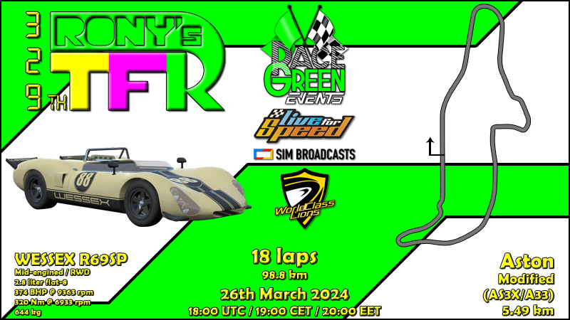 As some might noticed from broadcast,in 2 weeks RTFR will run a rather classic combo of LFS,that has never been used in RTFR,full details as always in the weekend before it,however next week the server will be "loaned out" to RandomCar - the 3rd race of the 2024 season will be run in Blackwood and there is plenty of fresh stock in the league's cars list.