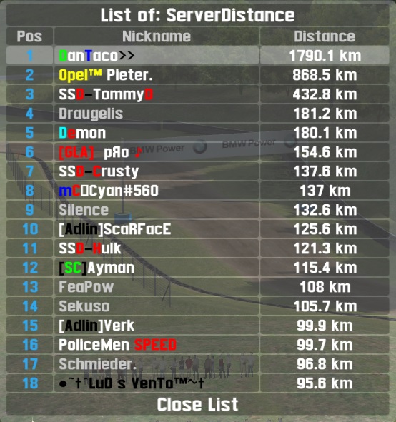 Hello. I record the distances of all players on my server. That's why I want to create a total distance list of all players. I looked to see if this was the same as the drifttop example, but it's too complicated. I saw this example in older versions of Lapper, but when I searched the files, there is nothing like this in it. How can I do that? I saw the drifttop example for the first time and it is very complicated. I hope this won't be this complicated.