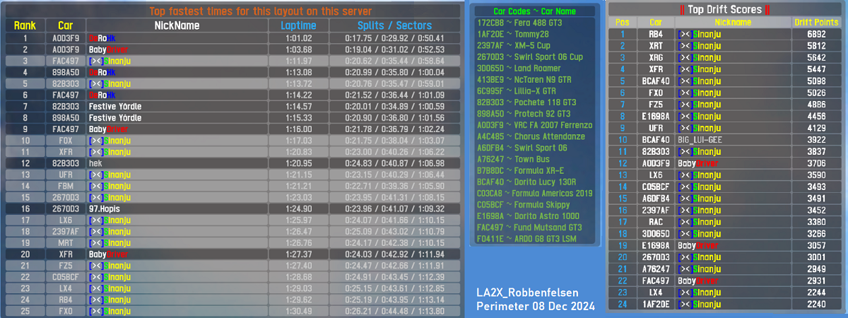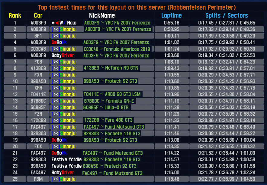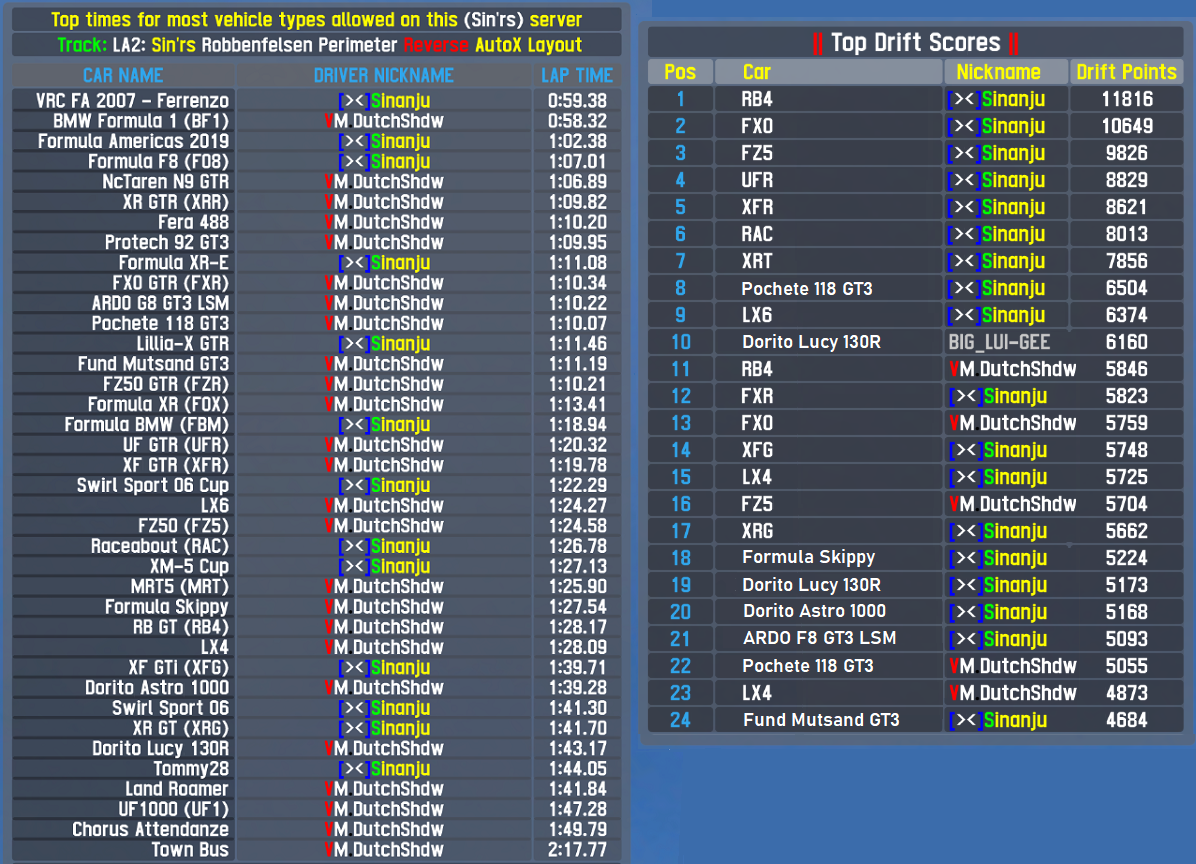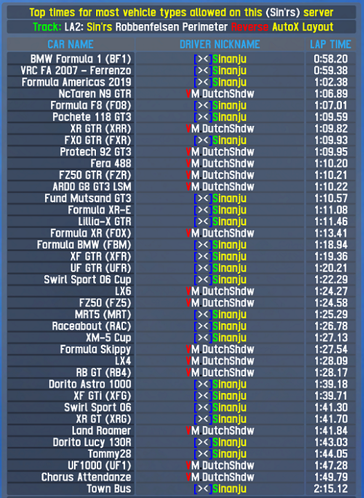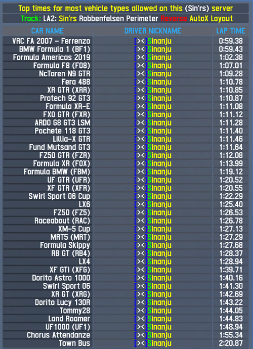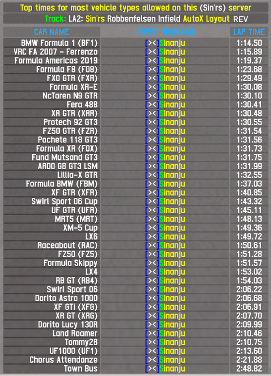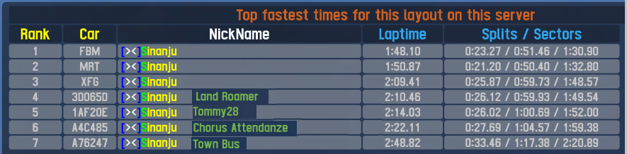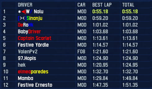 Set some times as I was changing signage and pit lane round. Most easily beatable, although I really tried hard to set good times with the town bus and Land Roamer mods.