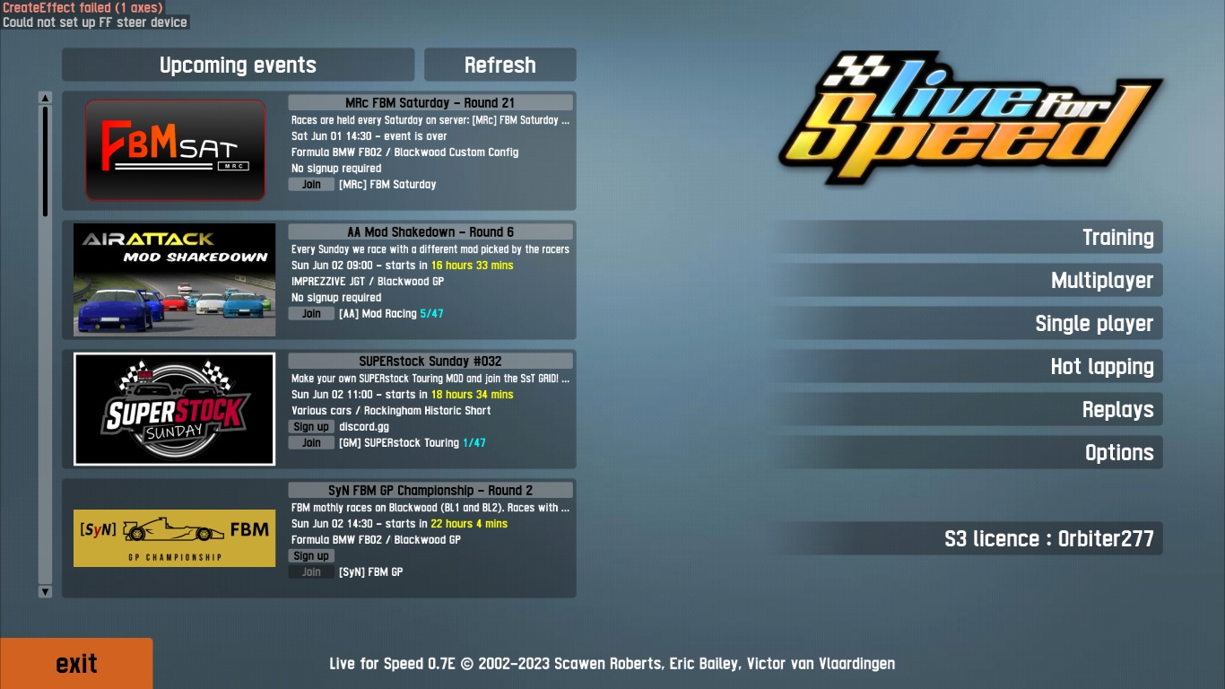 Says “CreateEffect failed (1 axis)“ and says it cant set up the device; despite being able to steer with it