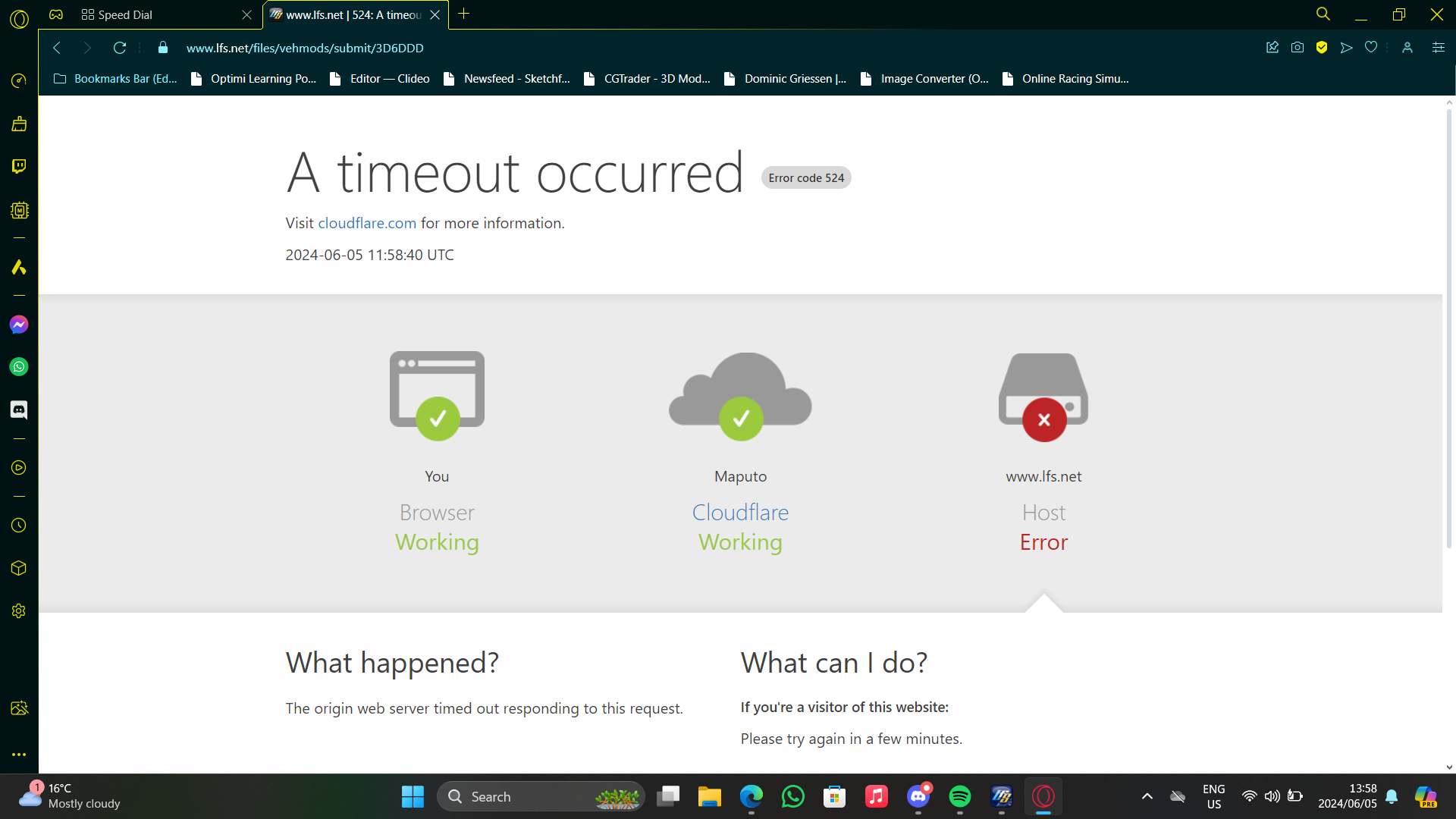 Good morning/afternoon modders!! I have tried to upload/update one of my mods this week and even earlier this month and last month... Every time I try to upload/update it is give my a "Mod Timeout" error... I have tried a different browser and still gives the same error, I have the new LFS and LFS editor version, if you had the same error please help me out