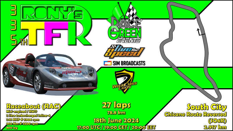 With this the 1st scored season of RTFR is over and next race in 2 weeks will be an off-season race,therefor there is no information about combo besides the usual rhythm of having a slick tyre using car after road tyre car. Next week the server will be randomized in terms of car selection - round 6 of RandomCar 2024 Series will take place in Kyoto's Sprint 8-track,however july's RTFR XL edition will bring us back to South City,where FZR will be raced in Town Course reversed.