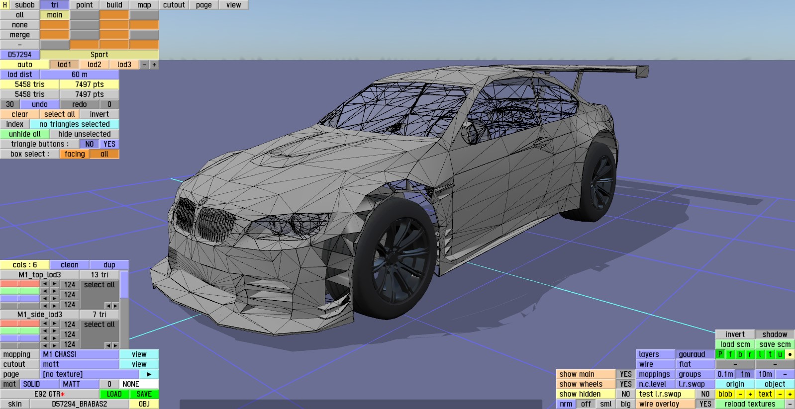 I searched the internet to find any similar topology of the e92 and i cant find any similar LOW POLY with same or slightly different topology, i found one that looked like both used same drawing but the other guy topology was even more worst, i plan to increase the tris amounts(details) in his model and i have asked him in his comment section if its ripped and he said he did it according to drawing.