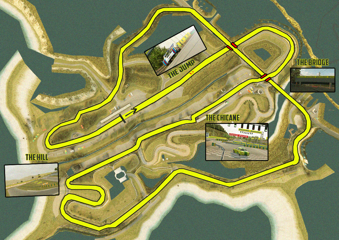 This track offers quite a complete challenge for the driver, as you'll find all kind of corners and speeds in it.