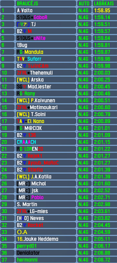 Previous race was run with LFS's own people's car,this week the race was held with a car from a class that is becoming a people's car in GT racing - GT4 class car N.400S. With it's relativelly simple handling (still offering some challenge) it attracted a total of 37 racers for qualifying session - that is the highest number since 326th RTFR run in february,however 3 drivers decided to leave before the race,so we had 34 cars standing on grid.