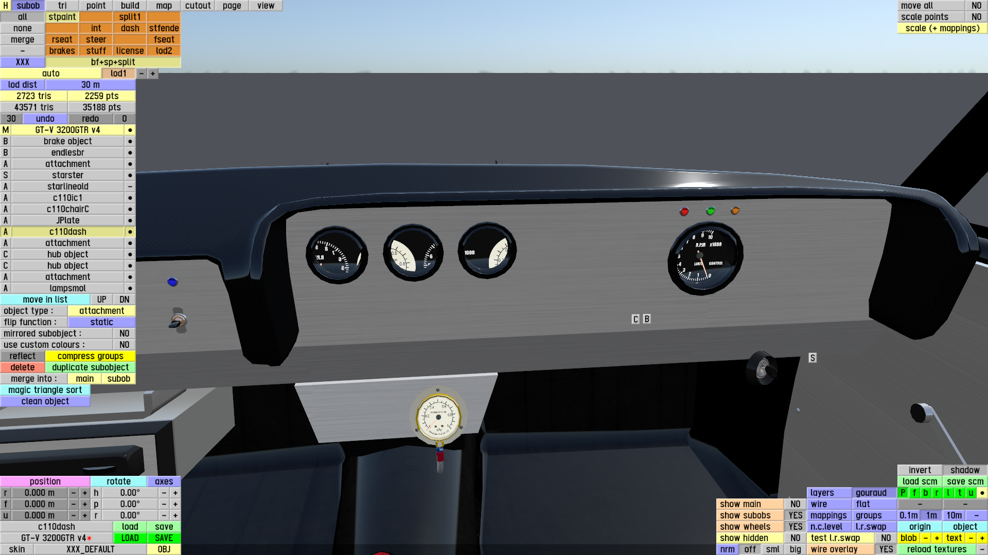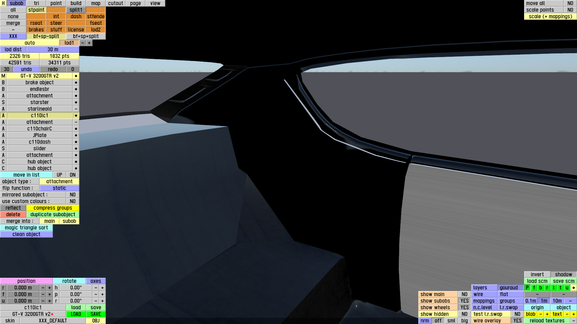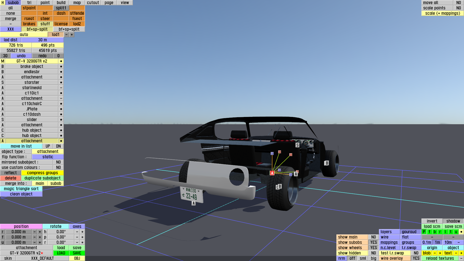3D model is Martin Trafas' Nissan Skyline GT-R C110 Kenmeri '73. I downloaded model and unsubdivided it in blender & merged by distance in LFS Editor to make it fit in the tri-limit. All interior parts is modelled in blender with looking to real life and Gran Turismo's interior photos. This video really helped about reference: https://youtu.be/TgBlKRScTno?si=P2LV0blSZs_4ZoDV