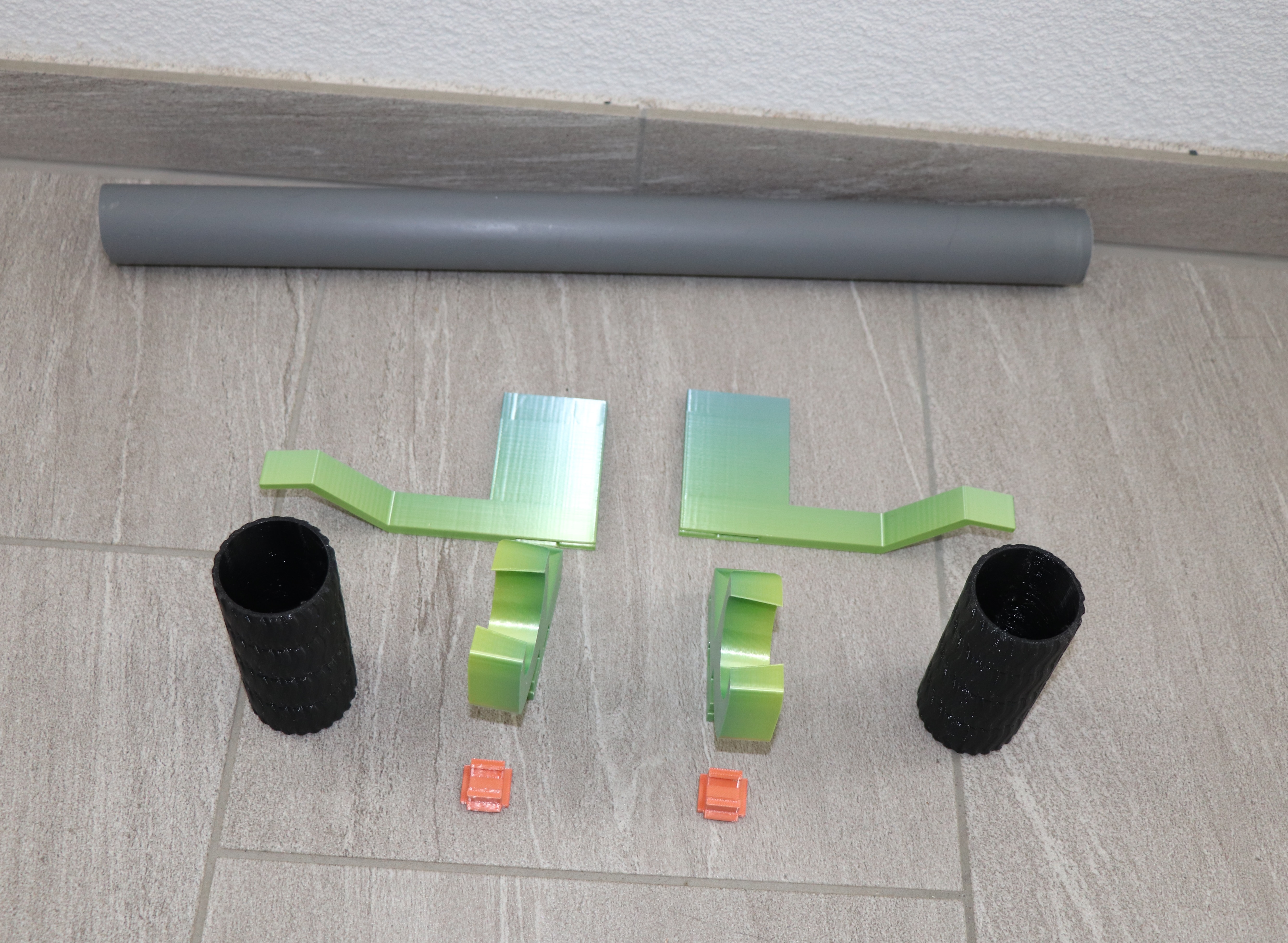 The only component that was purchased is the dark gray plastic tube that serves as the handlebar.