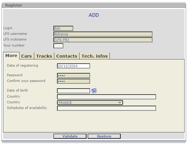 Once your account is registered, you will have a window alerting you that a email has been sent. But you will need to contact the staff for a activation since the mailing system is broken from our hoster change. Now you can check your mails, it will send you a activation link, don't forget to check the junk mails, and don't hesitate to add "contact @ lfsfrance . org" to your contacts so it won't send you messages in junkbox.