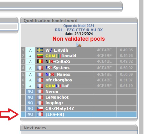 If your registration is successfull, you will see your name appearing on the qual tab with or without a lap, depending if you did some on our servers