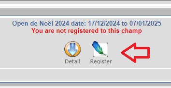 Once your are registered and logged in, first of all you'll need to check if you are on the right championship page. It can be our league as our holidays opens (xmas or summer).