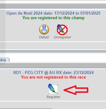 If you are registered to the league, it then will show you another icon with a paper sheet and a feather, it is related to the race registration
