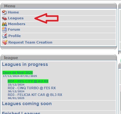 Then on the left menu, you click on "leagues" and it's going to show you on the left side a list of the past and present leagues (opens are listed as leagues also), and you'll have a "leagues in progress" also, if there is one active.