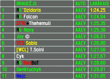 Previous winners : [FM]ˆチαtαι (2024 - A2AT). YES V.Lakūnas (2023 - PZGG / 2022; 2019 & 2017 - FXR), S1DUS*Botsi (2021 & 2020 - FXR), B2マ FasT (2018 - RB4), A.Valta (2016 - RB4), CoRe A.Laipnieks (2015 - FXR), 22 S.Jurvansuu (2014 - FXR), CoRe V.Pitkänen (2013 - FXR), spdoFade (2012 - FXR)