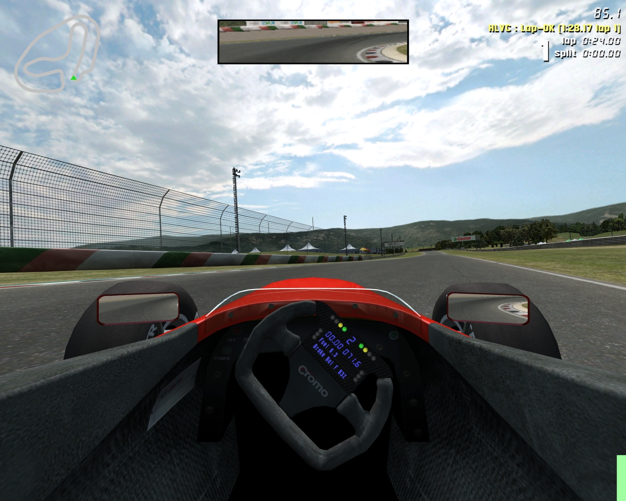 I ask that someone with an ATI card do the same. Please download the replay, stop it at exactly 24 seconds into the first lap, and take a screenshot at a resolution of 1280x1024 with Mip bias set to 0 and -4.
