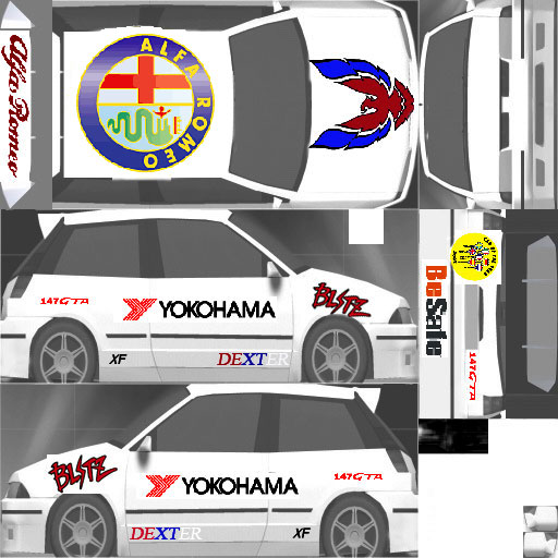 Try using GIMP or get paint shop pro. Paint isn't the best tool for this, you could do a lot better! And try to recreate real skins, or at least try to match brands/sponsors. Like Alfa romeo isn't using Yokohama, they use goodyear and pirelli, as far as I searched.