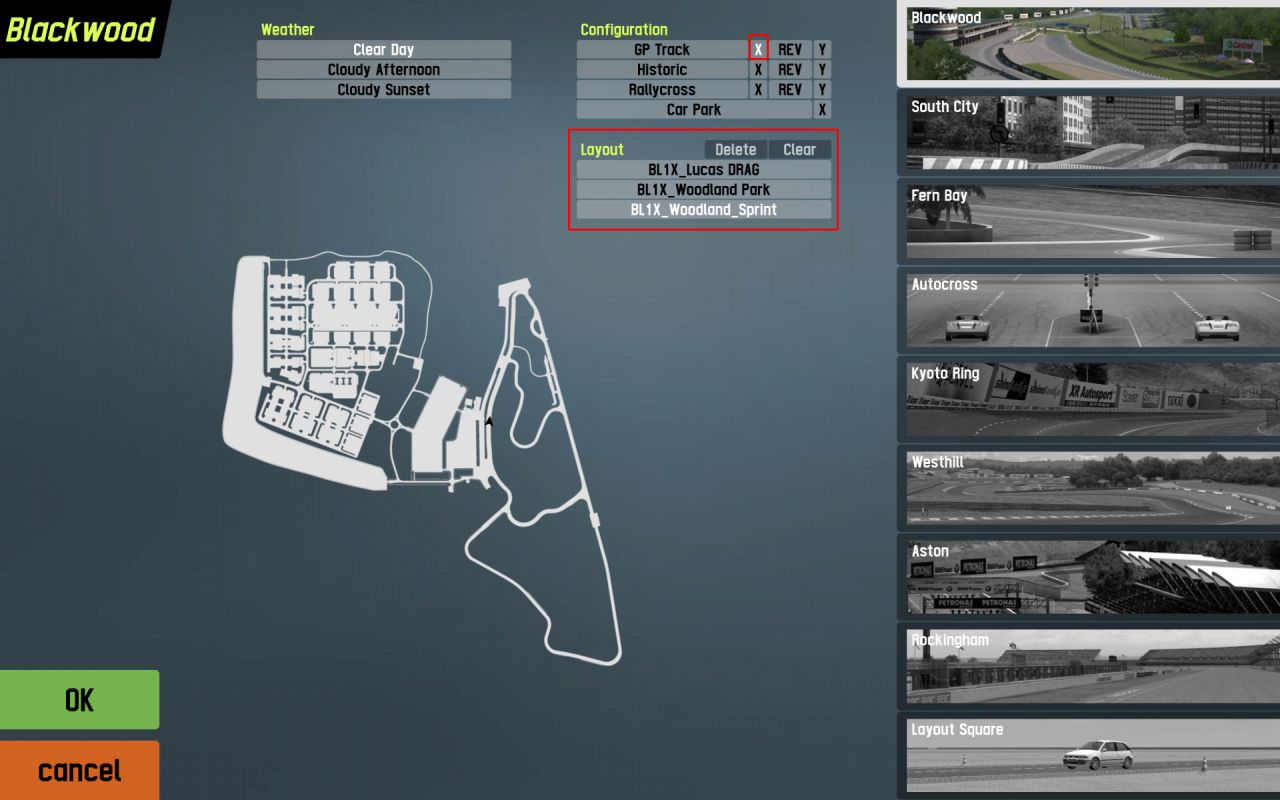 What guys are saying is the following. You created a layout on a certain track, say for example BL1. Custom track configuration is required for that and you have two options when loading a track from single player, one is called "x", other is "y". The 1st one reffers to a custom non-reversed variant, say BL1X, other is reversed BL1Y. Your layouts have to have this prefixes in ther name followed by an underscore, for example BL1X_something. To load a custom layout you must load track frist then you must select x or y variant in the track loading menu. I'm not sure how one loads a specific layout from single player.