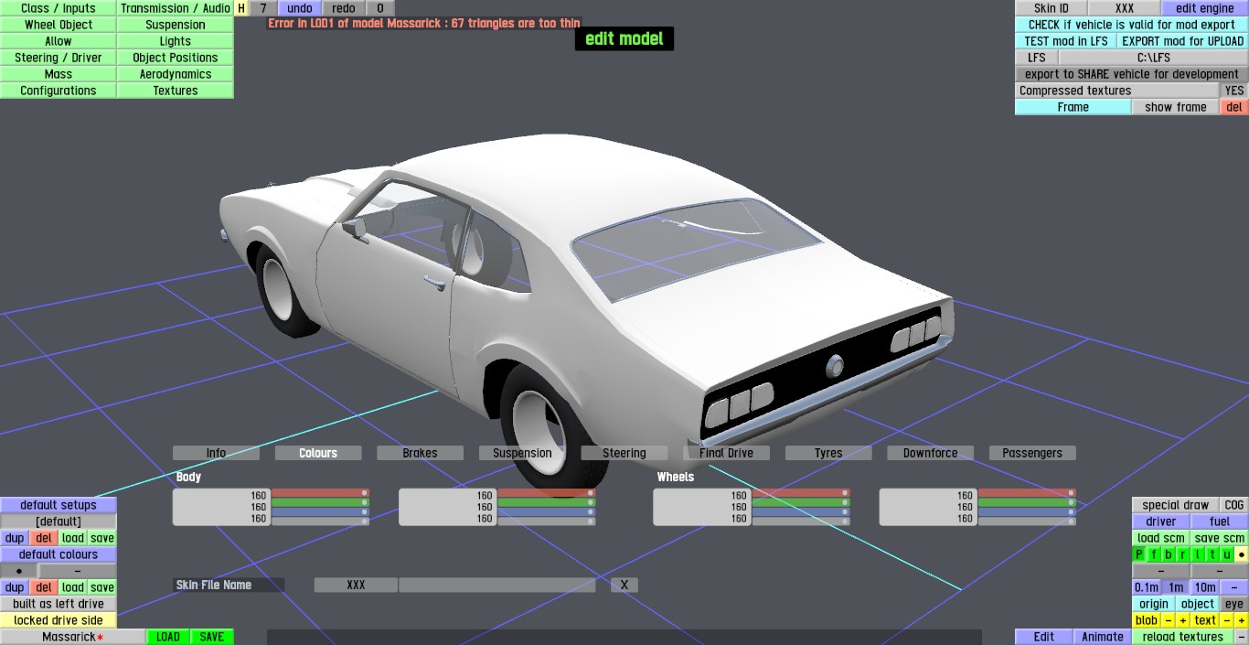 Hello everyone, in this thread I will leave updates on the conversion and some improvements to this Maverick GT model, there are a lot of things that I don't like and I will improve within the LFS EDITOR