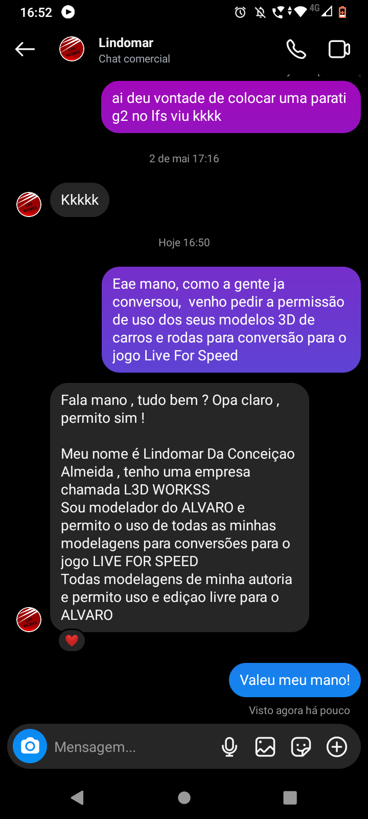 This is permission to use the models of the creator Lindomar 3D Workss (L3D Workss) who was very recognized in the Brazilian mod community for GTA SA (between 2014 and 2018), especially Brazilian cars, currently sells 3D models for 3D printing or conversion for games.