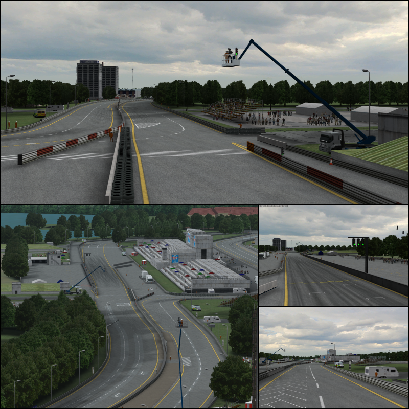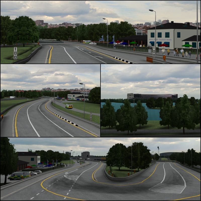 I've done a lot of changes.. Basically in short, redid crowd, added shadows all around the map, a lot lot more buildings and stuff around track, added Skid marks, starting lights, cameras all around the track at different locations, redid every tree from scratch and fixed all odd lighting on trees (and a lot lot more), layout/collisions still not finished.