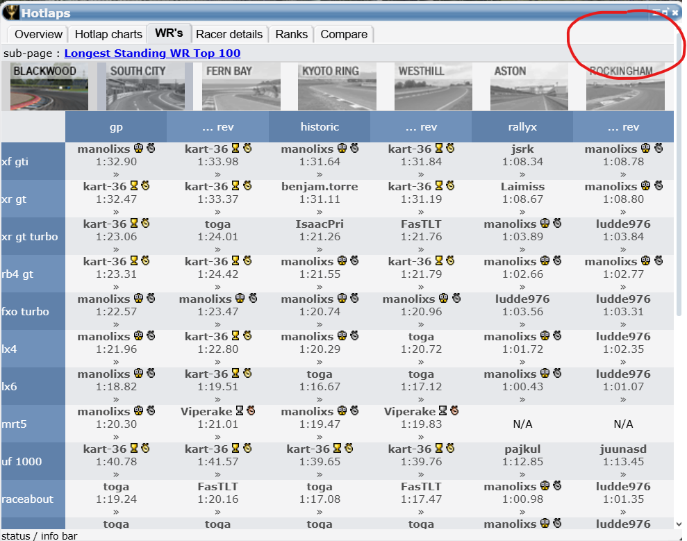 In the previous versions, if older hotlaps were removed, that removal only applied to just one track environment at a time (e.g. walls at South City, new Westhill, new Blackwood). Because of that, I didn't have that much of an interest of having older WRs as an archive.