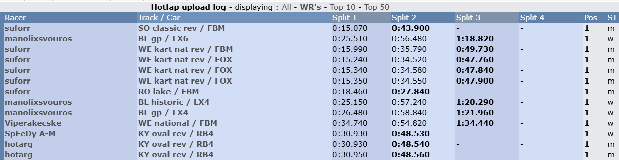 What did I think in LFS Discord, would be that just before the new version is released, one would take a copy of the hotlaps/WRs and display it somewhere as an archive and make sure it stays like that so that the newer version and the data from it wouldn't overwrite the one that archive would have