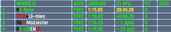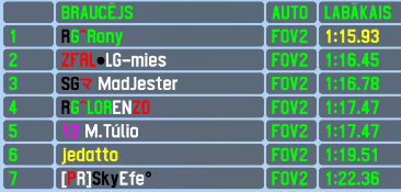 For 2nd time in row race was won by previous vice-champion of series,however with absense of round 1 winner,this time it was Rony,who was the fastest in both sessions,scoring his 2nd VERL pole position and despite getting involved minor incidents during early phase of the race,he also crossed the finish line as race winner after leading 25 laps in his 50th VERL race. LG-mies is running in VERL for the 4th season and this is turning into his best one - the 2nd position in both sessions are his best results (previously 5th in qualifying and 4th in race),the finn already doubled the number of his top5 finishes in VERL. With different troubles,Madjester was the last driver to classify him in race results as finished,still in this low attended event that resulted in 3rd place finish,which means also he has doubled the amount of own top5 finishes during this season.