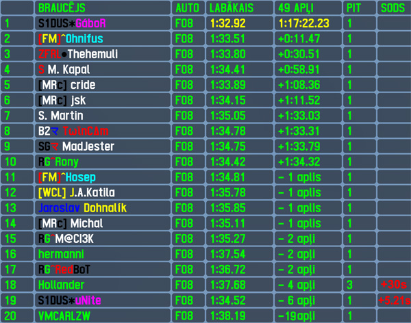Last FO8 race won by: S1DUS*GáboR - 2 wins in row (98nd RTFR XL - KY GP Long rev.)