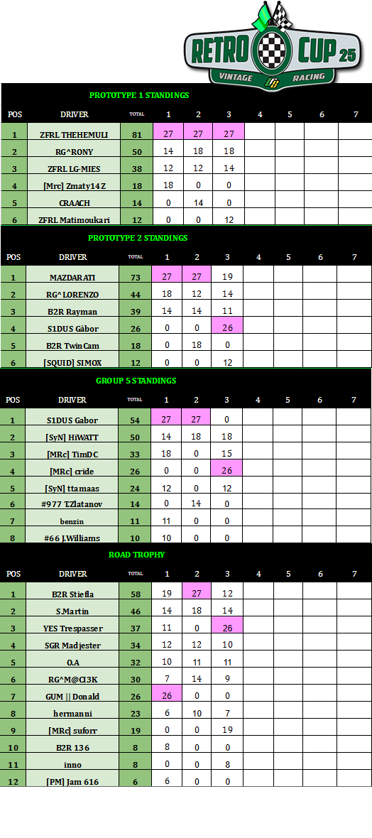 Top 5 was completed by B2R Rayman, a bit struggling on this combo, while his team-mate Twincam retired from the race early on, after being involved in a Lap 1 incident with ZFRL LG Mies.