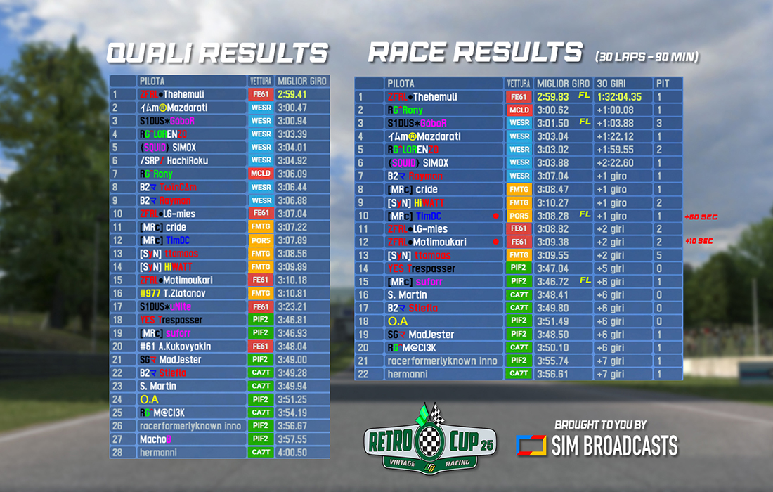 Under the Retro banners and sponsors spread all around the track, Round 3 started under clear skies for 90 minutes of proper Retro Action!