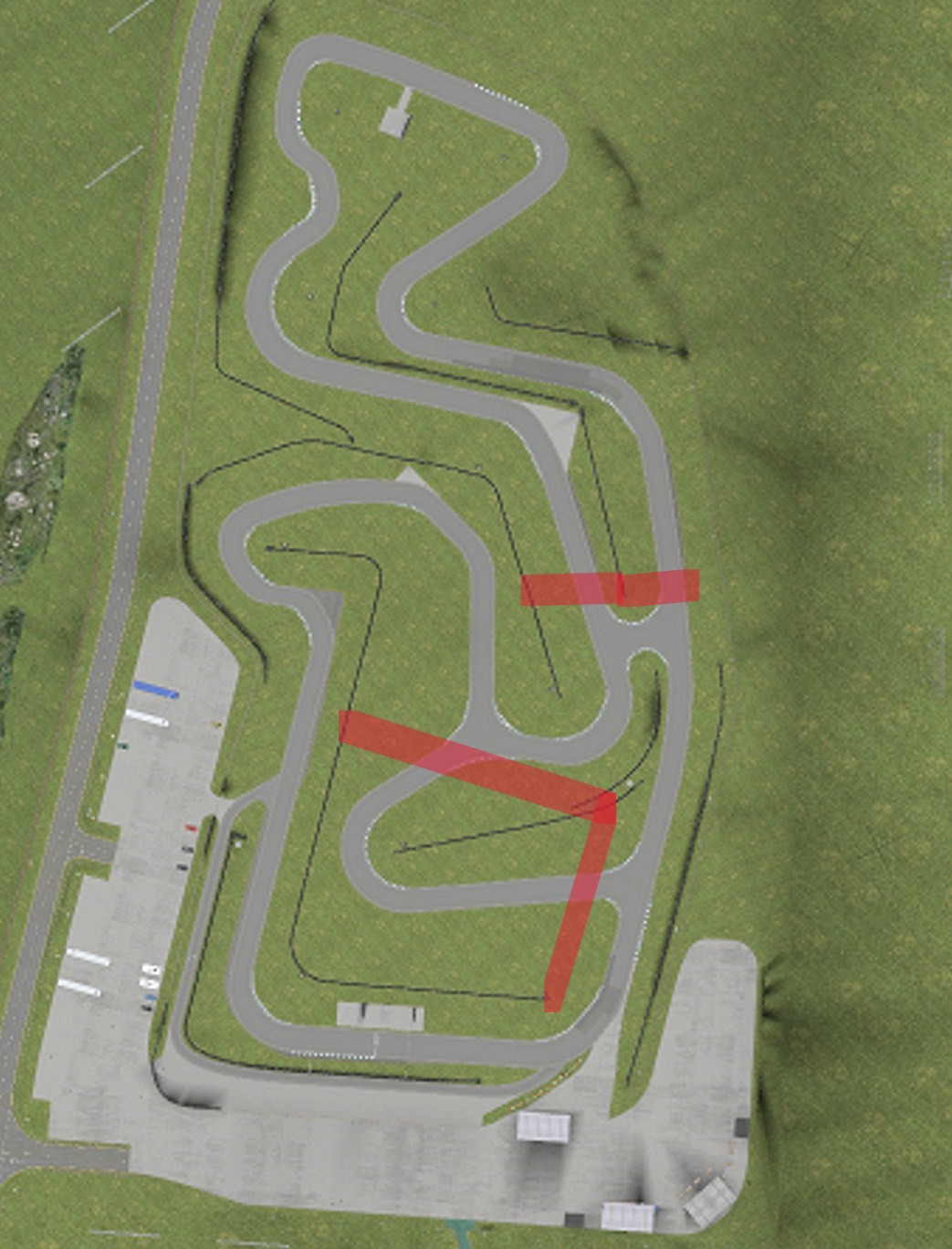 Then, I also remembred that Westhill too does have two karting areas. However, both of them only contain one track configuration (+ reverse). When looking the map, you can easily see that, both of those karting areas could have 2 additional track configurations each.