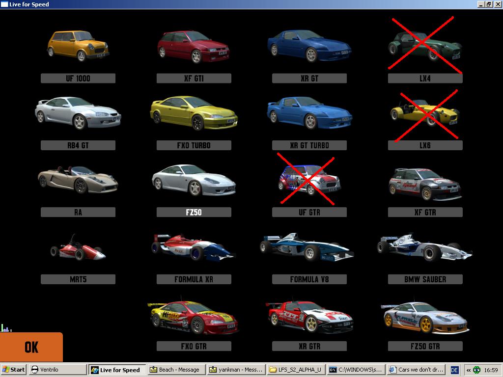 Over the last week I've seen regular XR GT servers, more than TBO/GT Turbo servers in fact. The LX4 is raced more than the LX6 (or the entire LRF class) and the FO8 is my favourite car in LFS