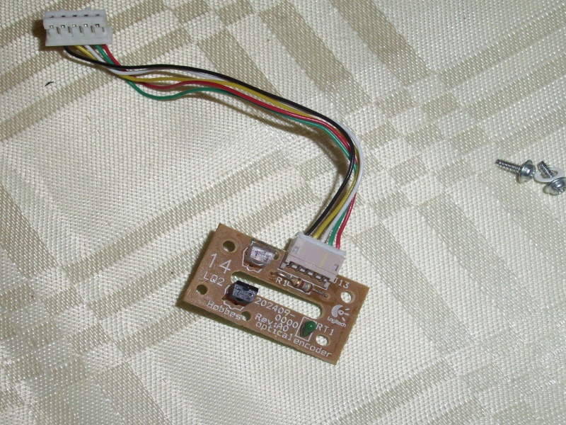 That optical encoder could well be the trouble you know,oh & those little round black rings are magnets.