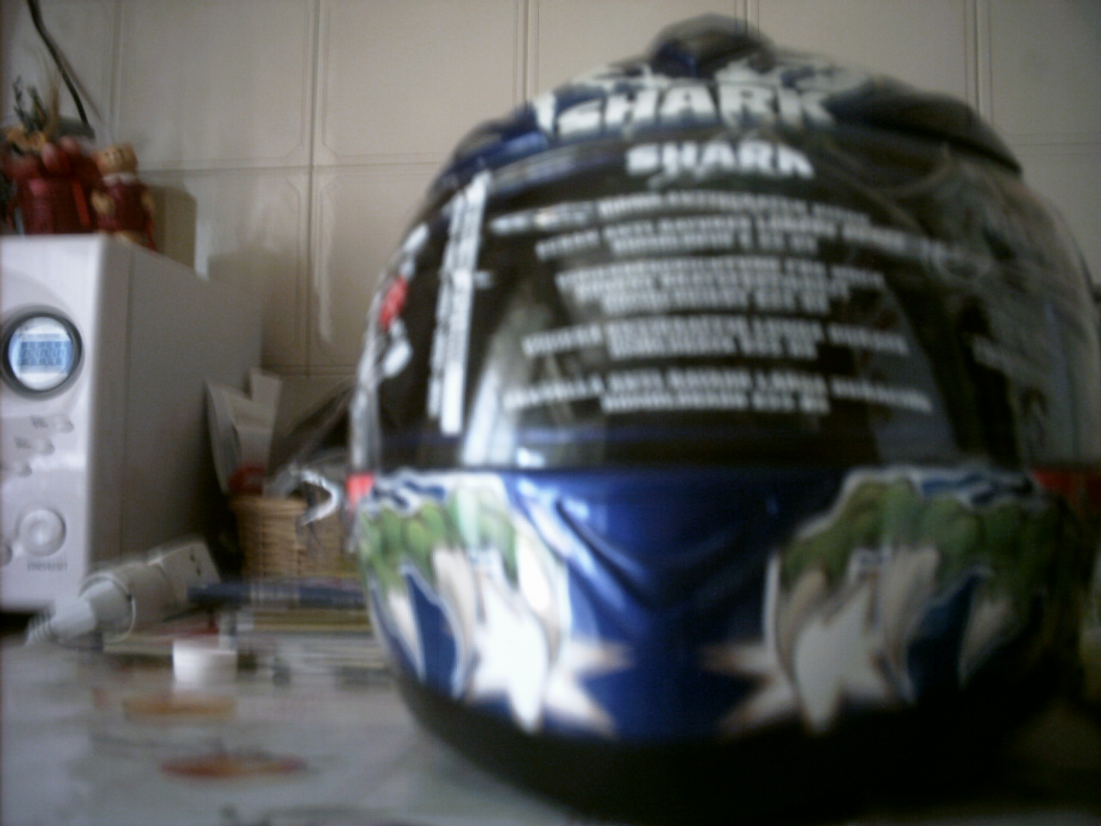 You just took the pictures too close, and it cannot focus that close. Take it a bit farther away. Because if you give us multiple shots with some crisp detail, you could actually just take the design from the pictures and slap them into the helmet skin. It may not be done completely by hand, but it will at least be somewhat accurate.