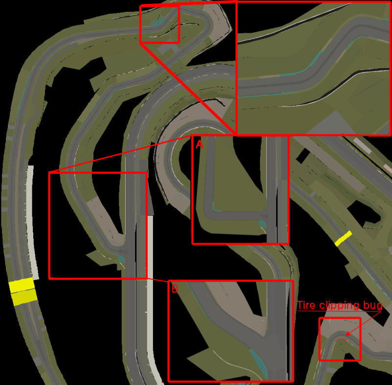 3: First chicane of most of the FE configs. Online this corner usually causes a lot of accidents because 2 or more people are trying to take it flatout next to each others. Again, make it like a proper chicane, a more technical corner section