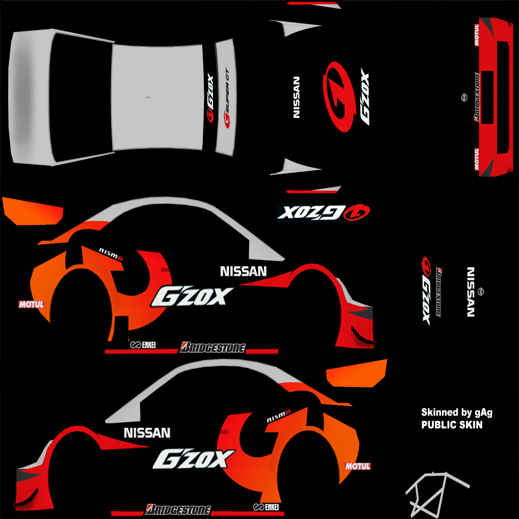 Nissan GZOX from Japan's Super GT Championship, the skin's a little different to the screen shot cause I changed the orange colour after taking some advice on how to get the right sort of effect at master skinnerz (thanks btw).