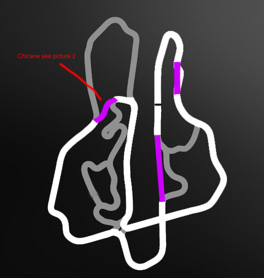 My idea is to combine some of the elements(turns and similar track sections) of the Nürburgring into a track that has a section that goes up and down a mountain. That way you also get your hillclimb tracks and a forest road.