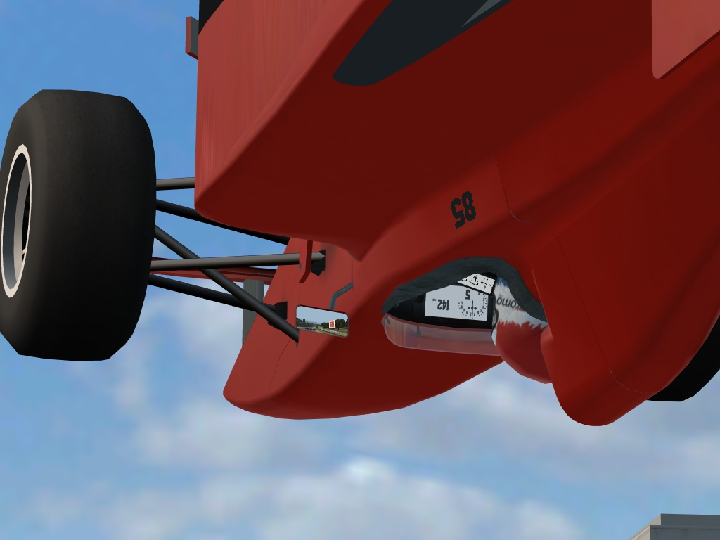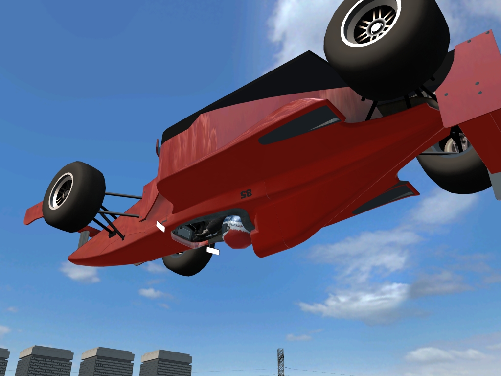 Since the wings are upside down when the car is inverted as you see in the pictures, the wings produce lift (like an airplane) rather than downforce. This results in the car appearing to pretty much float in the air. I also thought it made a good screenshot.