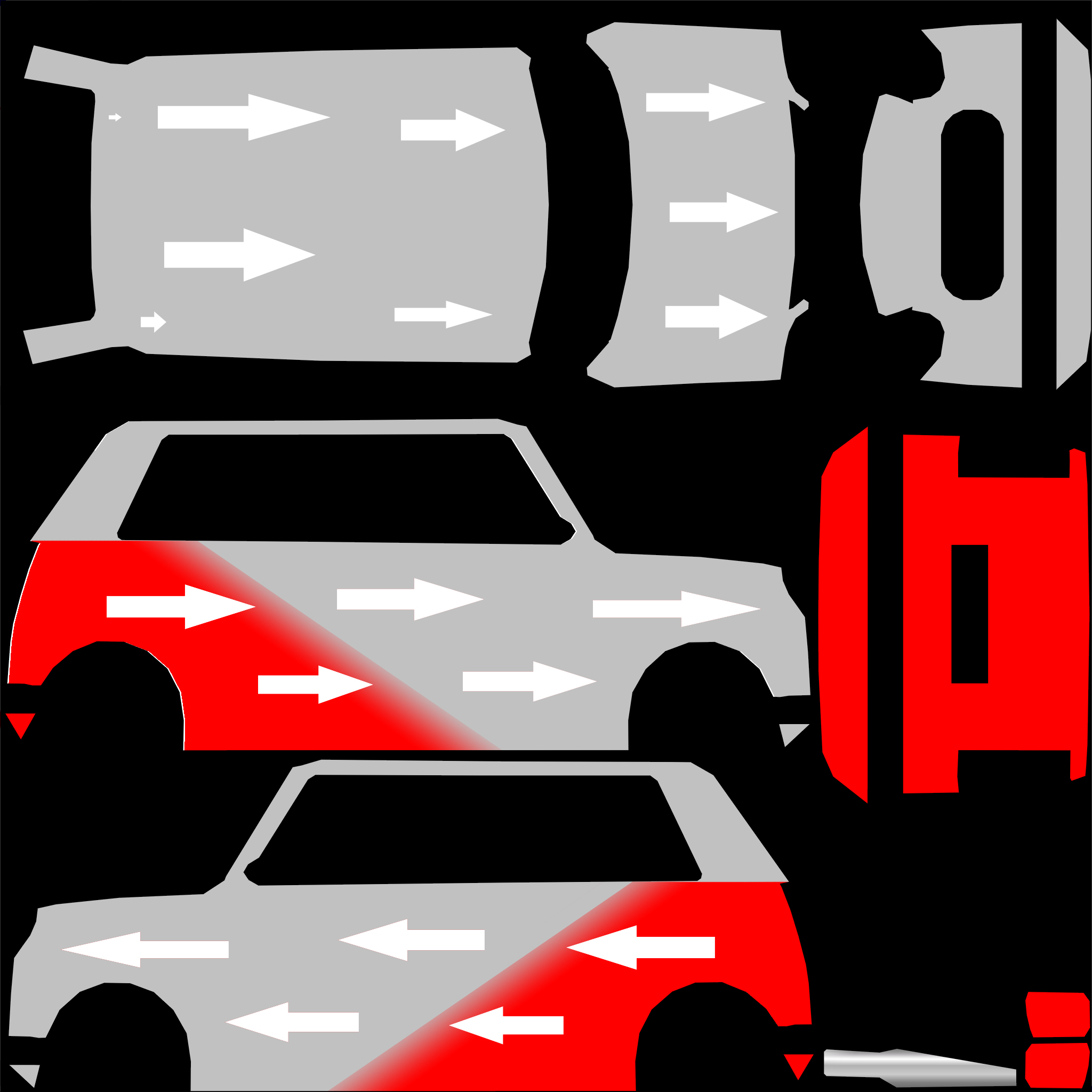 Hi, I was wondering if anyone could do a UF1 skin that is mainly red, with white or silver arrows down the side. I would like them going forward, so their facing the way the car is driving (if it's in a forward gear). I'd also like them on the roof, and the hood, which are also facing forward. They would look like arrows on a ramp. I'd prefer someone experienced to do it, but I'll accept most skins. If you feel like it, you can also make it yellow with black arrows, but I don't care.