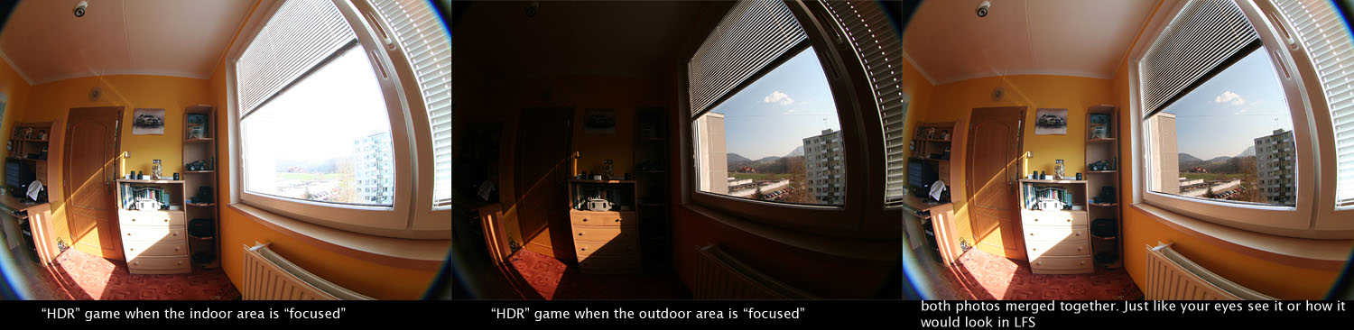 The way I set it for LFS is similar to how I fake HDR in photo shop, you have to clip the levels a bit and then bring the mid contrast up a bit. Remember, it's still fake, so its still LDR but it LOOKS like HDR.