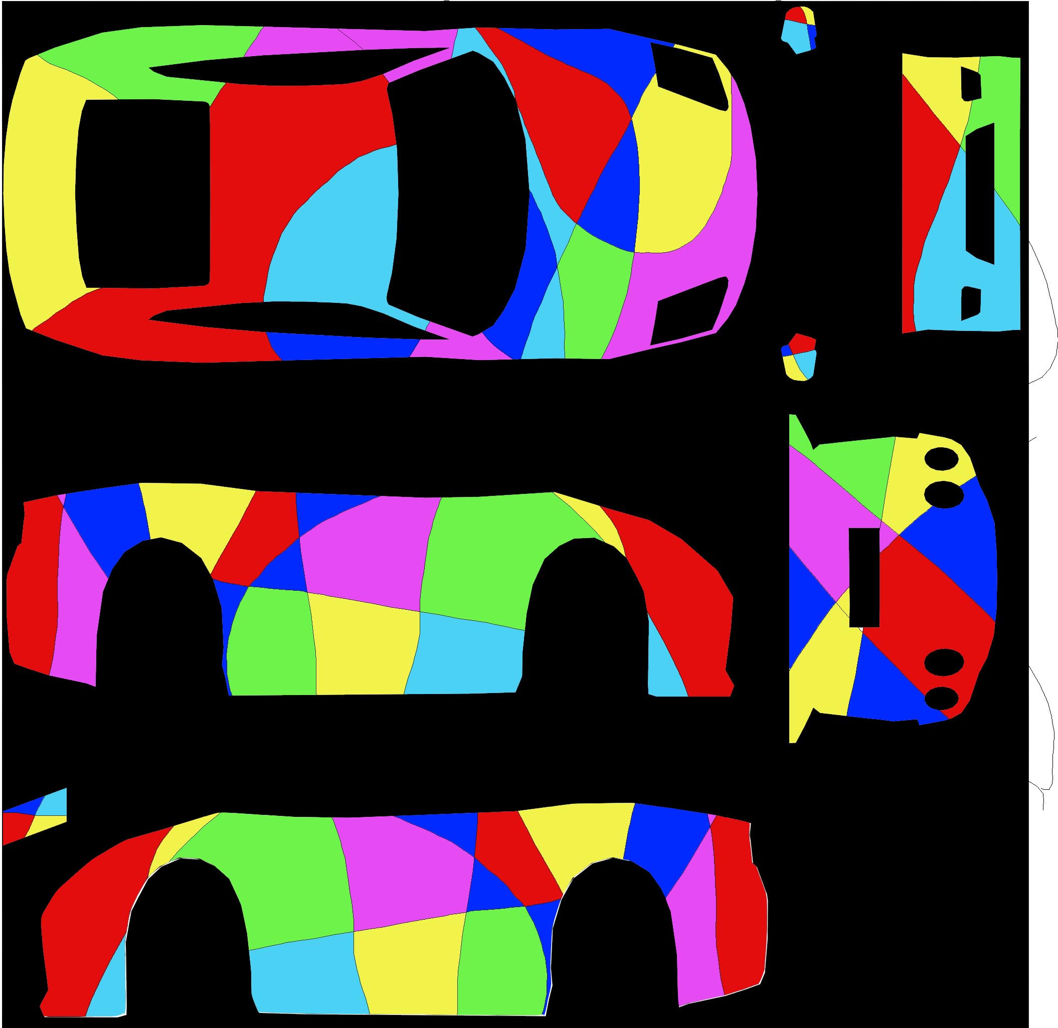It has to be the right size to properly wrap on the car. Also, where did you get that black mask? It doesn't align with the UV mapping at all, and that is why you are getting black spots on your car. Remove the black overlay and use the one from the Master Skinnerz Pro Skinning Kits.