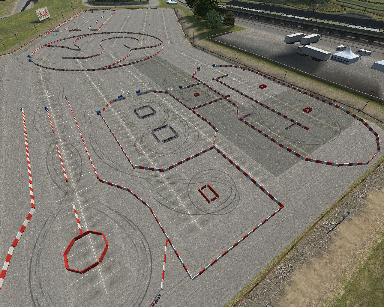 This is my first layout for Live for Speed and I must say I'm kind of proud of it! This is a technical drifting area with multiple courses, mostly tight ones, good for practicing show drifts... You can drift around the big circle in the middle to practice fast, long turns and inside the circle, you have a small course to practice small, tight turns. Also, there is a twin "drift/drag" layout : you basically drift between the obstacles, make a u-turn and come back still while drifting. Well, just look at the pics and tell me what you think... Tell me if you like me to add something else in the unused part and I'll do my best! Thanks!