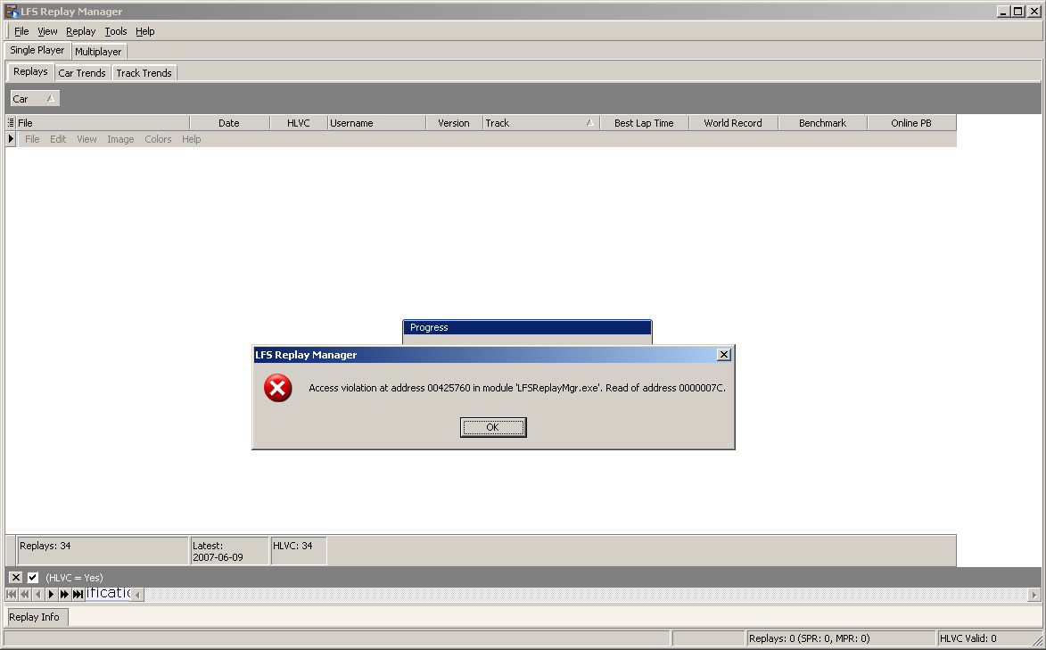 I think the reason that it clears after you manage to close the error msg eventually is that the error is probably triggering while reading the replay list, so you'll get 1 msg per replay file.. that's my logical guess to that part anyway